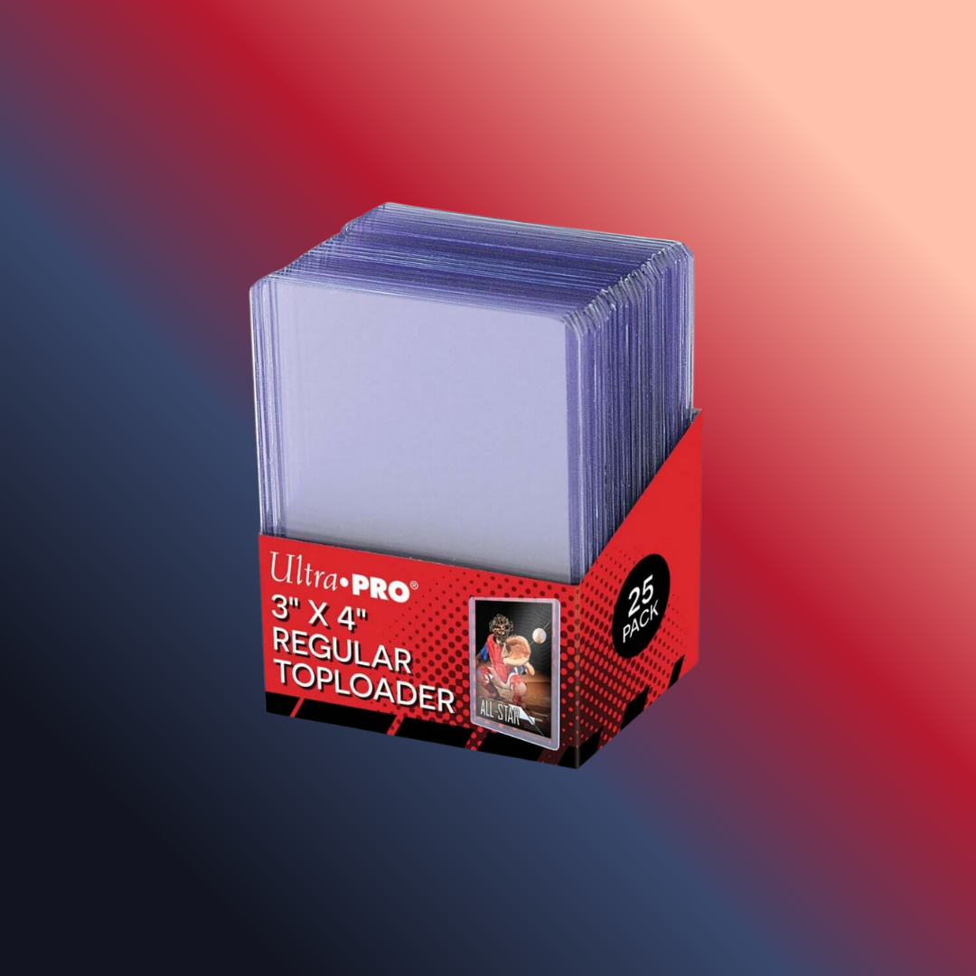 Protect your valuable collectible trading cards with the original Ultra PRO toploaders! These rigid plastic protectors are made with super clear PVC to keep your cards safe for storage, display, during trade and in shipments. With outer dimensions of 3″ x 4″, these toploaders are designed to safely store standard size cards (2-1/2″ x 3-1/2″) up to 35 points in thickness. Each pack comes with 25 individual toploaders. Recommended for use with Ultra PRO Card Sleeves and Premium Card Sleeves.