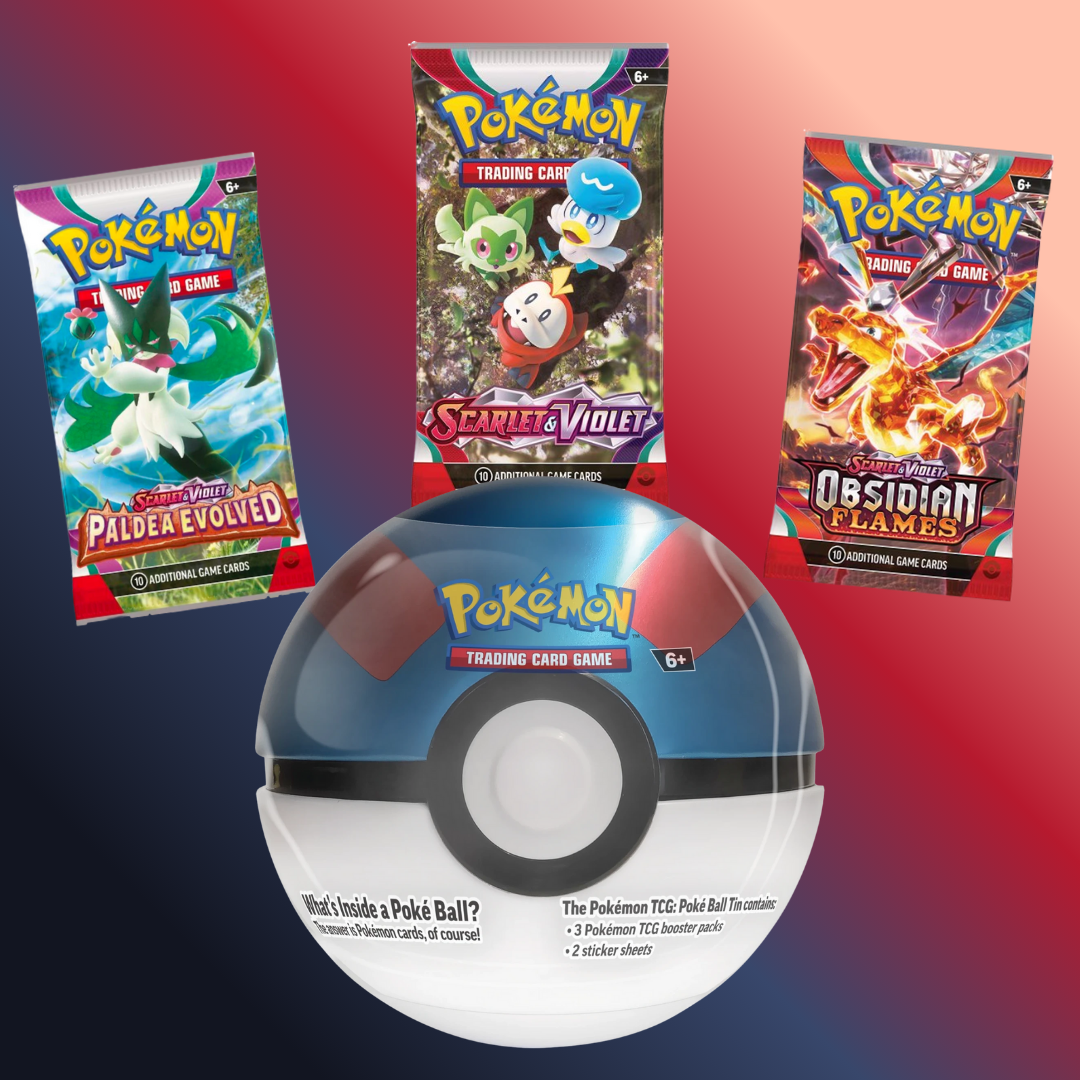 - 3 Pokemon TCG Booster packs (including Scarlet & Violet, Paldea Fates, and Obsidian Flame)