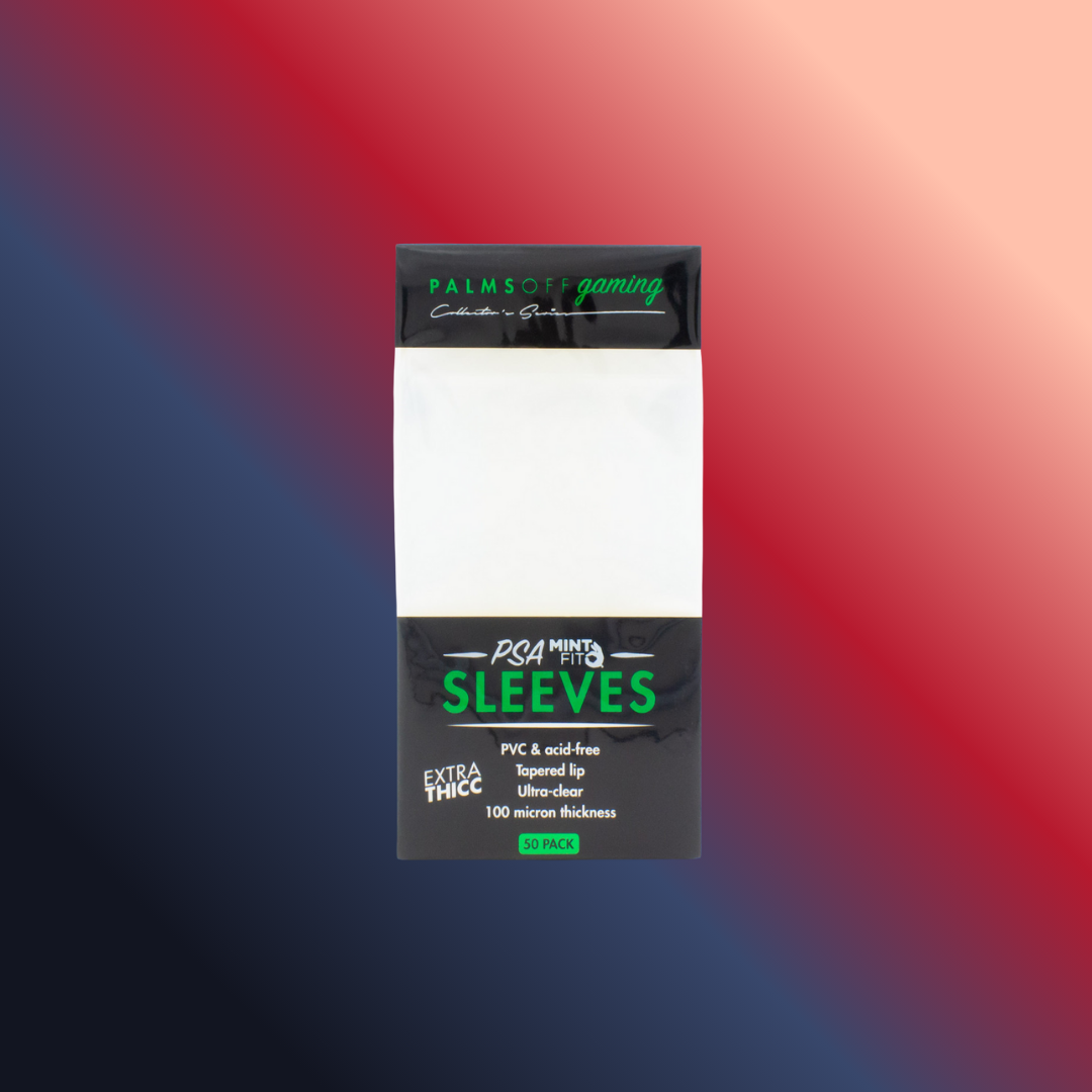 Palms Off Gaming's extra thick PSA & CGC MintFit Sleeves are optimally sized for your PSA graded cards, any like-sized slab will also fit (see slab dimensions below). Each pack contains 50pc 100 micron thick polypropylene sleeves. Archival-safe PVC-free and acid-free premium material. Also featuring a V Shaped resealable lip - your PSA cards are going to be well protected.