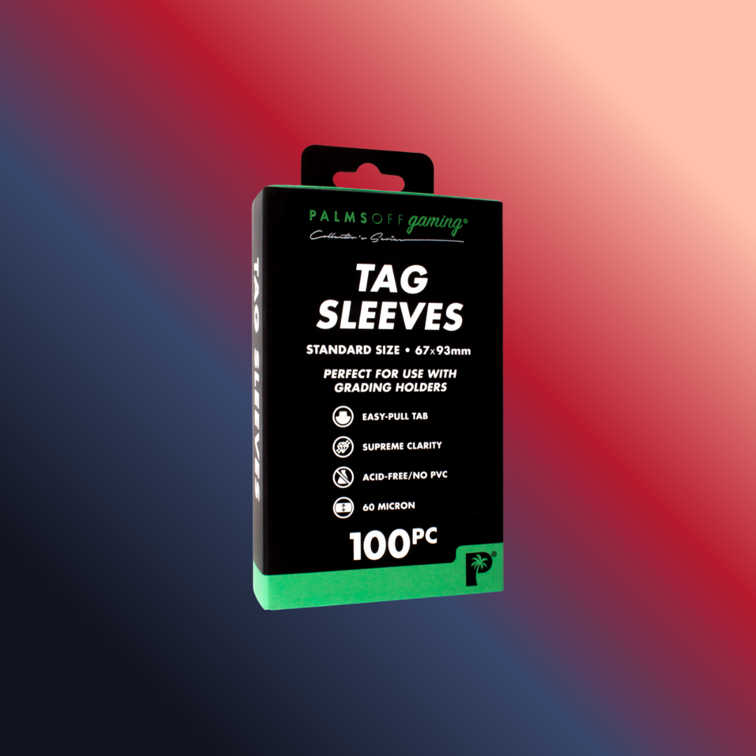 Tired of putting sticky notes/tabs on your soft sleeves to send your cards off for grading? Palms Off Gaming sure are, after prepping Palms Off Gaming's own cards the hard way for the last five years... Problem solved with Palms Off Gaming's new tag sleeves!
